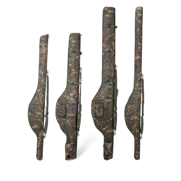 Nash Subterfuge Hi Protect Rod Skins, a high quality luggage range from Nash available with a 1, 2 or 3 rod capacity and in 10 and 12ft size options. With all the rod skins having enough room to accommodate larger big pit reels and 50mm butt rings. With additional stiffened tip protection and a central anti snag double zip puller plus a wide mouth reel pouch for easy adding or removal of rods. The 2 and 3 rod versions also have 4 pairs of elastic loops on rod skins for banksticks or distance sticks. The Single Hi Protect Skins are designed to fit into the base pouches on 2 and 3 Rod Hi Protect Skins to expand their capacity. Features Hi Protect Skins are available in 1, 2 and 3 rod in 10, 12 and 13 foot – offering rod protection for all 2 piece rods in common use All models have enough room for the biggest spooled reels and 50mm ringing even on the 10ft skins Central anti snag double zip puller and wide mouth reel pouch for easy adding or removal of rods Stiffened tip protection 4 pairs of elastic loops on 2 and 3 rod skins for banksticks or distance sticks 1 Rod Hi Protect Skins are designed to fit into the base pouches on 2 and 3 Rod Hi Protect Skins to expand their capacity 1 Rod Hi Protect Skins are not supplied with a shoulder strap, but this is available separately