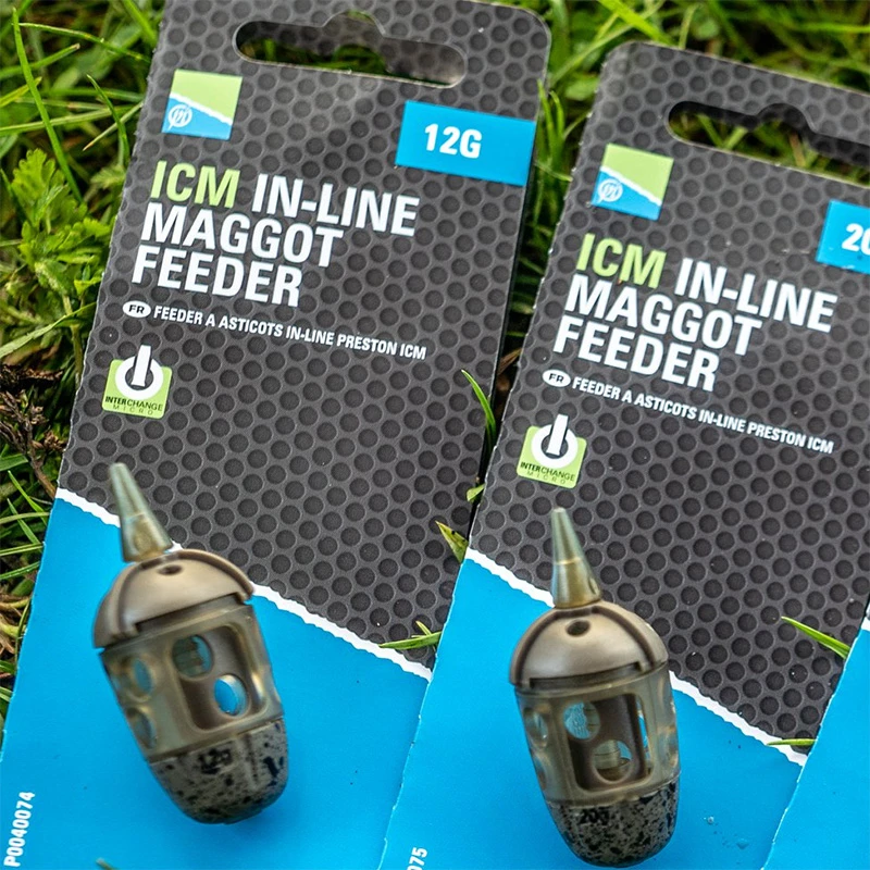 ICM IN-LINE MAGGOT FEEDER The ICM Maggot Feeder is the perfect addition to the popular ICM Feeder range. As with all the ICM feeders, the Maggot feeder has been designed to be used on those tough days when feeding minimal amounts of bait is required, making it the perfect F1 or silver fish feeder during the colder months. This feeder is extremely user friendly, featuring a sliding loading window, forward facing lead and the revolutionary ICM quick change system allowing you to change to a bomb or different ICM feeder in seconds. Available in: 12G / 20G