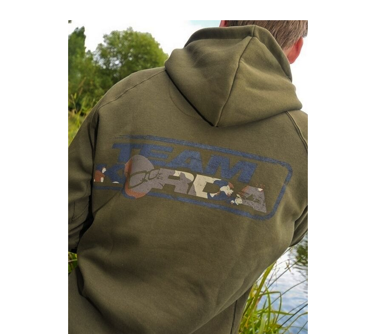 Our in-house designer has taken the classic hoodie and completely remodeled it to improve fit, functionality and styling. The resulting garment is what we call action-fit. The raglan shoulder and stretchy underarm panel allow free movement, while retaining the tailored fit. In short, the hoodies are comfy, and don't look like they've been modeled on a potato sack! The hoodie has been cut from 320gsm fleece jersey, which offers a rich, cosy feel against the skin too. Other features include a snug crossover fronted hood, neat drawcord loops (so they don't dangle on the fish when you're doing photos!), thumb inserts as well as secure gadget compartments in the kangaroo pocket (one for the phone and one for the receiver). It's also been made in the UK so we could ensure the quality is met with our Korda standard.