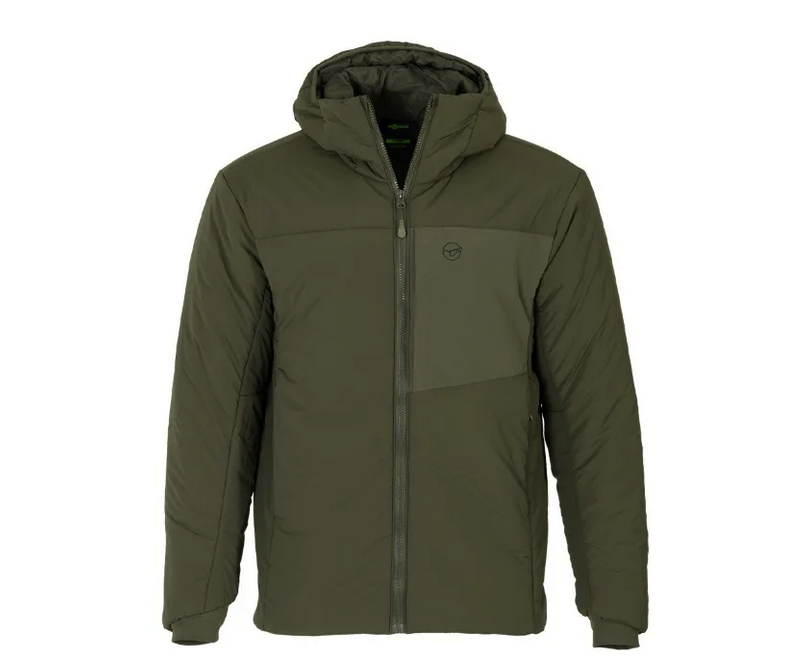 Stay warm and dry in the Korda Insulated Hooded Jacket. Designed for maximum comfort and protection. The outer shell is crafted from high-performance materials offering exceptional durability while remaining incredibly light. The water-repellent finish ensures you also stay dry in light rain or snowy conditions.The interior lining is gentle against your skin. Whilst the 6oz insulation provides excellent heat retention without unnecessary bulk, keeping you warm even on the coldest days.The jacket features an extended back panel, offering additional coverage to protect your lower back from cold air when bending or stretching. This thoughtful design element ensures you stay warm and comfortable when casting or sitting down.The versatile hood can be easily adjusted to provide optimal protection from wind and rain. Customise the fit to your liking, whether you need full coverage or just a bit of extra warmth around your head and neck. There is also a double-sided chin guard which offers dual protection for your face and neck. The chin guard effectively seals out cold air, wind and moisture, ensuring you remain comfortable in the most challenging weather conditions.The jacket's cuffs are designed with exceptionally soft material, providing a comfortable and snug fit around your wrists. This helps to seal in warmth and prevent cold air from entering through the sleeves. There is also a secure chest pocket with a zip closure which provides easy access to essential items like your phone, receiver or cash. Our Insulated Hooded Jacket combines cutting-edge materials with thoughtful design features to deliver exceptional warmth, comfort and protection whilst you’re on the bank. However, like many of the items in our clothing range, they are also ideal for any outdoor pursuit or everyday wear. The jacket offers a perfect balance of style, performance, lightweight construction and insulating power.Available in Dark Olive and in sizes small to 4XL and if it’s head-to-toe protection you want, we also have a matching set of insulated joggers available in our range.*The materials used to construct this jacket are:Outer fabric 92% Nylon, 8% Spandex (20D, 50gsm).Interior lining 100% Nylon.Key features Lightweight, water-repellent outer fabric with 6oz insulation for superior warmth Soft interior lining Elongated back to prevent drafts Convenient zipped chest pocket Adjustable hood Double-sided chin guard to block wind and rain Extra-soft, comfortable cuffs