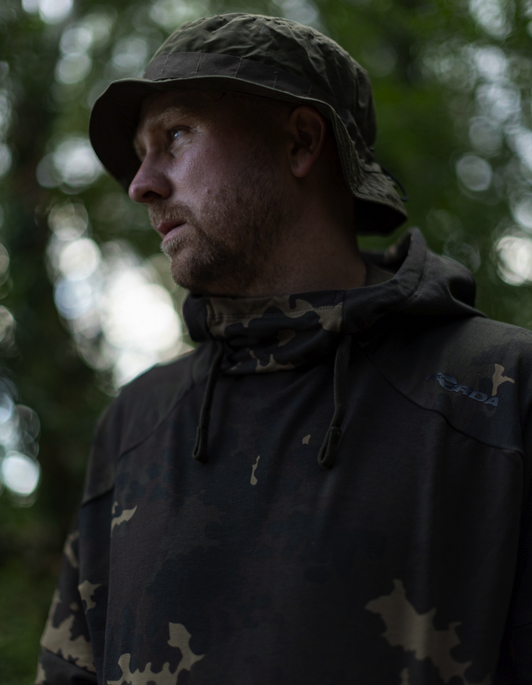 This is the perfect choice for the summer months when you need an extra layer in the evenings/mornings/cooler days, but a standard hoodie is far too warm to be comfortable. The hoodie is made from a mixture of cotton/polyester/spandex which gives this hoodie a relatively snug fit and tailored to the shape of a typical upper body, whilst at the same time allowing complete freedom of movement, which is essential when casting, etc. The cuffs and neck are loose-fitting, to allow plenty of air flow, and the hood can be adjusted via a drawcord. It is available in a NEW dark kamo version in sizes S to 4XL. *The materials used to construct this product are: 58% cotton, 38% polyester, 5% spandex, 270GSM. Key features Perfect choice for the summer months Extremely comfortable Tailored to upper body Complete freedom of movement Loose-fitting around neck