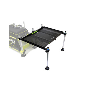 Key Features Minimum size: W 50cm x L 53cm Fully Extended size: W 50cm x L 81cm Lightweight aluminium construction Supplied with 2x telescopic 25mm support legs 3D fittings on all leg blocks Fits 25mm, 30mm and 36mm round legs Extra-large extending side tray Comfortably able to hold 12 x 3.3pt bait boxes Perforated mesh to prevent bait build up Fully adjustable up to 81cm in length, this extending side tray from Matrix is 50cm wide, and made from lightweight aluminium, making it easy to transport out to your peg, and durable enough to withstand anything your angling can throw at it, and standing up to even the most rigid set of paces you can put your seat box through. Supported by two 25mm telescopic legs, with full 3D fittings throughout, this side tray is designed to fit seatbox with 25mm, 30mm, and 36mm round legs, and is can hold up to a dozen 3.3pt bait pots. A perforated mesh cover prevents bait build up, ensuring that your platform stays clean, hygienic and easy to wash down after a session, making it the perfect choice for the active angler to attach to any Matrix seat box. Being a successful match angler relies on being organised, with everything within easy reach, and this extending side tray ensures you achieve that, effortlessly and stylishly. Side trays offer an effective place to keep winders and elastics within reach, as well as a convenient surface for tying rigs, giving you a clean, organised fishing station, with everything ready to cast out at the first sign of opportunity.