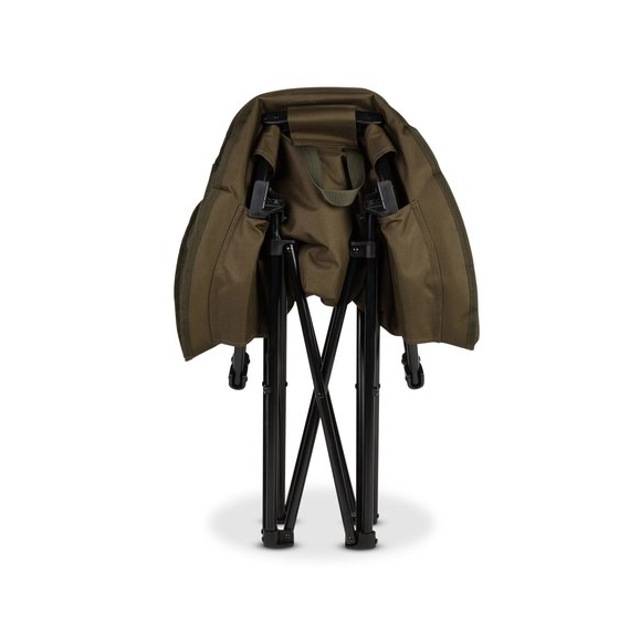 Nash Indulgence Hi-Back Auto Recline Setting the standard once again in bankside luxury the new Indulgence Auto Recline models add finite adjustment to your seating position to tailor comfort to the individual. Featuring spring locking levers each side of the chair, disengaging them allows you to push backwards or allow the head section of the chair to pull forwards before engaging them again to set the rake position of the seat – much like an aeroplane seat. All Auto Recline models feature: Twin armrests for support getting in and out of seating position Sculpted inner high density mattress MF60 Memory Foam head rest with reverse fleece cover for comfort Peachskin Nash Camo pattern mattress skirt Rear leg locking pins for stability and safety One touch adjust spring loaded legs with mud feet Product Information Dimensions Height adjustment 38cm-52cm Height of back: 70cm Weight: 7.9kg