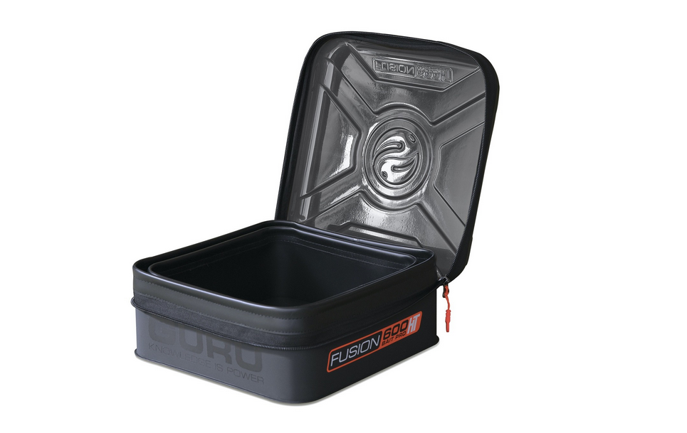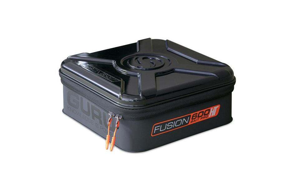 The Guru Fusion 400 & 600 Bait Pro HT are the latest EVA Fusion luggage items to join the Guru range. The main benefit to the Fusion HT Bait Pros is the unique HT (Hard Top) lid which has been designed to protect your bait from the elements. The HT lid is weighted and stays firmly in place without having to zip the lid up, particularly effective in windy conditions. The lid itself overlaps the edges of the EVA Bait Pro which means your bait will remain in perfect condition, even in extremely wet or sunny weather conditions. The Fusion 400 HT comes supplied with a standard 300 Bait Pro and the Fusion 600 HT is supplied with a standard 500 Bait Pro. Both the Fusion HT Bait Pros are constructed from an extremely durable 0.8mm EVA wipe-clean fabric material and also feature a super smooth reversed zips and the bespoke Guru zip pullers for easy access at all times.