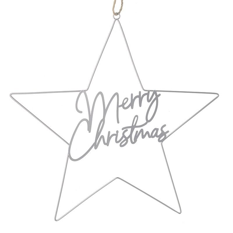 This chic decoration can be hung on a door all wall. Constructedof metal and finished with 'Merry Christmas' text.