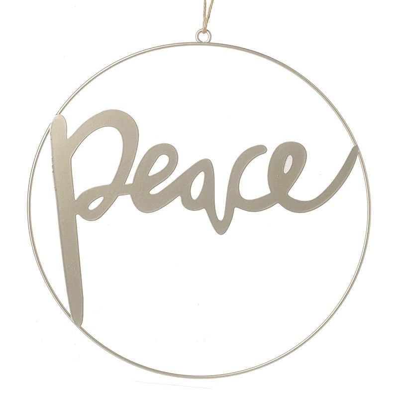 This chic decoration can be hung on a door all wall. Constructedof metal and finished with 'Peace' text.