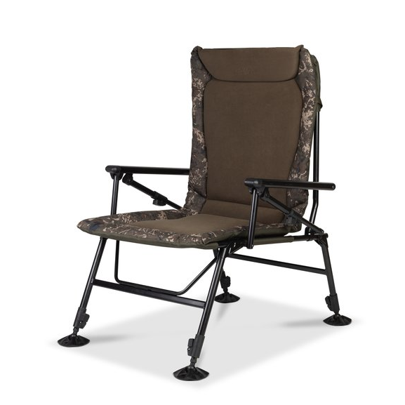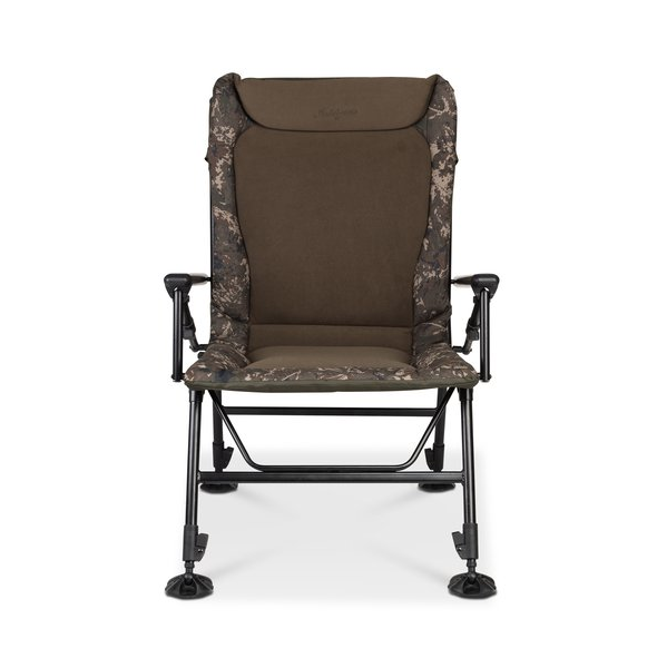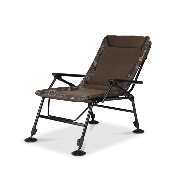 Nash Indulgence Big Daddy Auto Recline Setting the standard once again in bankside luxury the new Indulgence Auto Recline models add finite adjustment to your seating position to tailor comfort to the individual. Featuring spring locking levers each side of the chair, disengaging them allows you to push backwards or allow the head section of the chair to pull forwards before engaging them again to set the rake position of the seat – much like an aeroplane seat. All Auto Recline models feature: Twin armrests for support getting in and out of seating position Sculpted inner high density mattress MF60 Memory Foam head rest with reverse fleece cover for comfort Peachskin Nash Camo pattern mattress skirt Rear leg locking pins for stability and safety One touch adjust spring loaded legs with mud feet Product Information Dimensions Height adjustment 39cm-54cm Height of back: 65cm Width: 59cm Weight: 9.3kg