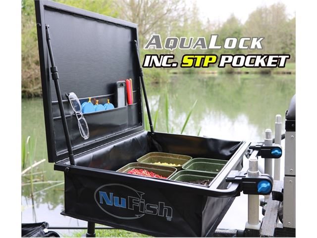 WATERPROOF SIDE TRAY , WITH ANY POSITION LID. IDEAL FOR KEEPING YOUR BAIT AND TACKLE DRY AND INTACT IN ALL CONDITIONS. UNIVERSAL FITTINGS TELESCOPIC SUPPORT LEG COLLAPSES DOWN TO 30mm FOR COMPACT STORAGE. EXTERNAL LENGTH 600MM X WIDTH 450MM STORAGE DEPTH 120MM The aqualock side tray is designed to keep you bait and tackle in tip top condition , protecting it from the elements , the adjustable folding lid will keep the sun and rain out while still giving you easy access in even the most adverse of fishing conditions. The tray is constructed from high quality PVC twin coated nylon with reinforced seams and corners, with a sturdy hard base giving a nice flat internal surface for your bait. This is supported on a solid aluminium frame which will support the weight of the contents, a telescopic leg is included for extra support when needed. The lid is fitted with 2 piston style arms that have friction collars fitted so you can adjust the tension , allowing you to fish with the lid in any position required but still allowing easy access even in heavy rain and wind Internal storage space of 560mm x 360mm x 120mm will accommodate upto 6 x 3 pint bait tubs but the nature of the soft aqualock nylon side panels will allow it to be packed down to 30mm in depth, so this tray will fit into your carryall or net bag for easy transportation It comes with 2 adjustable leg clamps that will slide to fit most box leg centres and the clamps will accommodate from 19mm dia upto 36mm dia box legs , and also most square legs on the market.